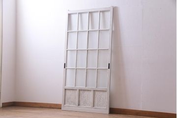 アンティーク建具 ペイント すりガラス 爽やかなホワイトカラーのガラス戸1枚 (R-038154)