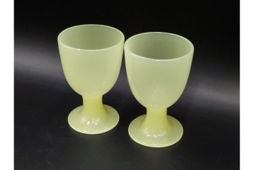 アンティーク 大正〜昭和初期の当時物 棗型 柔らかな色合いのウランガラスの氷コップ2点セット (R-086654)