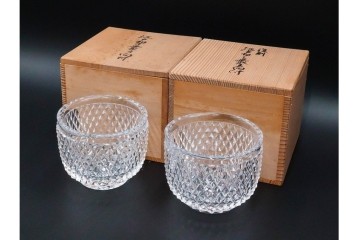 由水常雄 復刻作 霰文が美しい江戸切子の向付2客セット 共箱付き (R-085894)