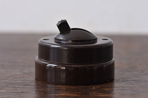 ベークライトという素材で出来た、アンティークスイッチです。ベークライトは聞き慣れないかもしれませんが、世界で初めて作られたとされる、プラスチックのこと。近年はほとんど使われることがありませんが、現在普及しているプラスチックにはないあたたかみが魅力です。色は白・黒・こげ茶色などのバリエーションがあります。