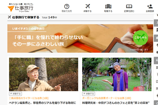 「見たことない仕事、見に行こう」というコンセプトを掲げた「仕事旅行」は、体験型の求人サイト。「西陣羽織職人になる旅」や「探偵になる旅」など、ユニークな業種の体験を提供しています。