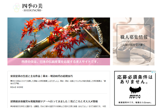 募集終了となっている求人も多いですが、求人募集は随時更新されているので、こまめにチェックするのがおすすめ。「四季の美」では、職人へのインタビューや伝統工芸のいろはを紹介した記事なども充実しています。 職人を目指す上で知っておきたい情報が凝縮されているので、ぜひ一度見てみてください。