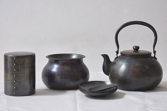 鍛金とは金型を使わずに、叩いて形を成形する技法のこと。 何十種類もの当金(あてがね)と金槌や木槌を使い、ひたすら叩いて理想の形を作り出します。鉄、ステンレス、銅、真鍮、鈴、アルミ、銀、金など幅広い金属を取り扱いますが、メーカーや工房によって扱う金属は決まっています。 鍛金の有名な工芸品としては、新潟の「燕鎚起銅器」や「越後与板打刃物」、長野の「信州打刃物」、「東京銀器」などがあります。
