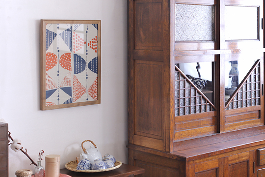 一方の後染めは、染料を溶かした液体に布を沈める「浸染(しんぜん)」という方法や、染料と糊を混ぜ布にプリントする「捺染(なっせん)」という方法で染めます。後染めは大量、かつ低コストで染められるのがメリットで、無地の布や手ぬぐいなどに多く用いられています。