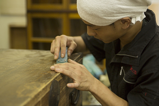 今回募集するリペアとフィニッシングは、家具や建具の再生を担う仕事です。古いもの特有の味わいを生かしつつ、実用品として申し分ないレベルに修理・修復を施し仕上げる。 単に綺麗に直せば良いというわけではないのが、この仕事の面白くも難しいところです。