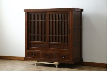 中古 美品 高級品!! 国産職人手造り タモ材 框組み 上質な和の空間を演出する水屋箪笥サイドボード(食器棚、収納棚、戸棚、茶箪笥、サイドキャビネット、店舗什器)(R-071787)