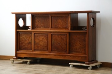 中古 美品!! 高級指物工芸家具 総欅(ケヤキ)材 漆塗り 重厚な佇まいが魅力の飾り棚 (R-079794)