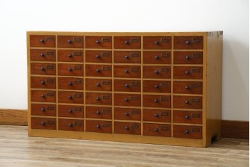 和製アンティーク レトロデザイン!! ネームプレート付き 引き出し42杯 たっぷり収納できるチェスト(小物収納、店舗什器、ドロワー、サイドチェスト、引き出し)(R-082666)