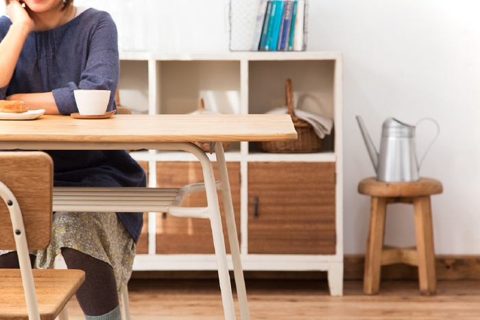 白と古材の家具でスッキリとナチュラルに。大人可愛いダイニング