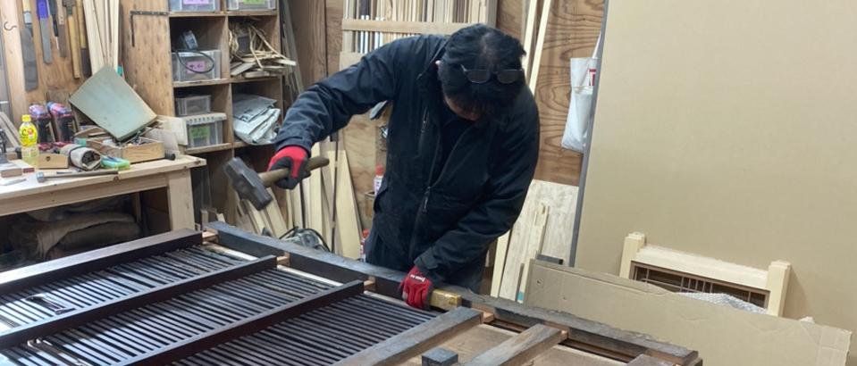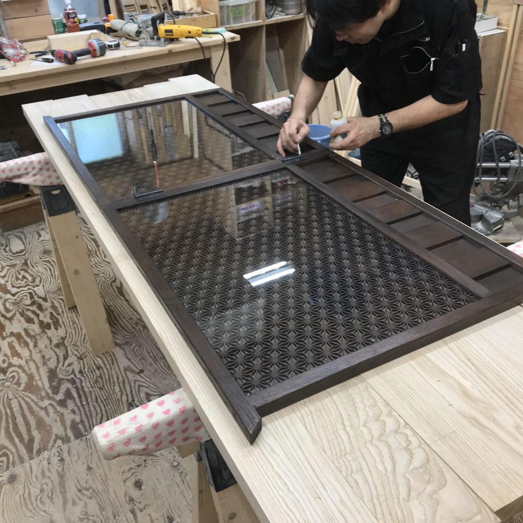 昭和中期、麻の葉模様の優美な帯戸をお客様のご自宅の間口に合わせてリサイズします!