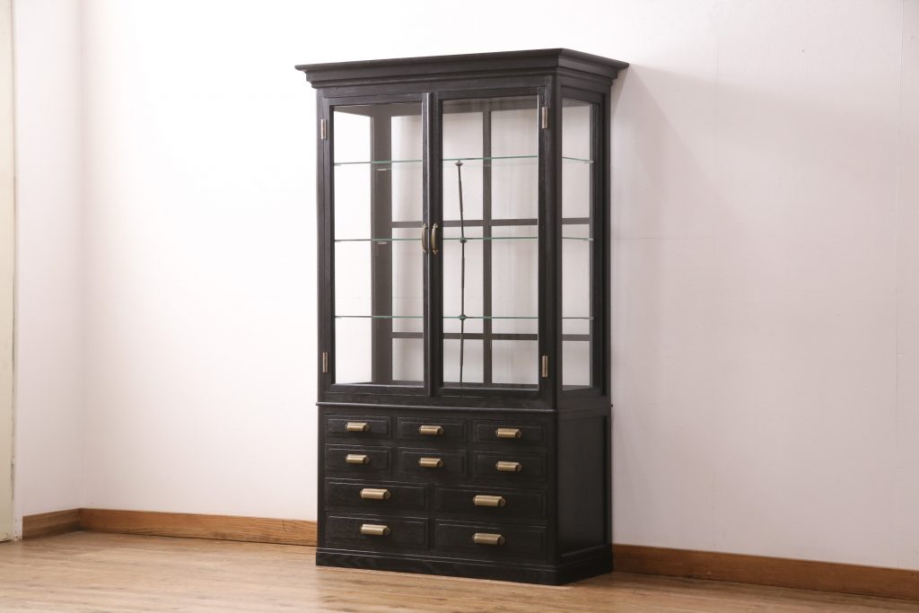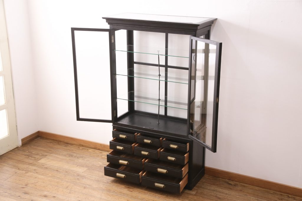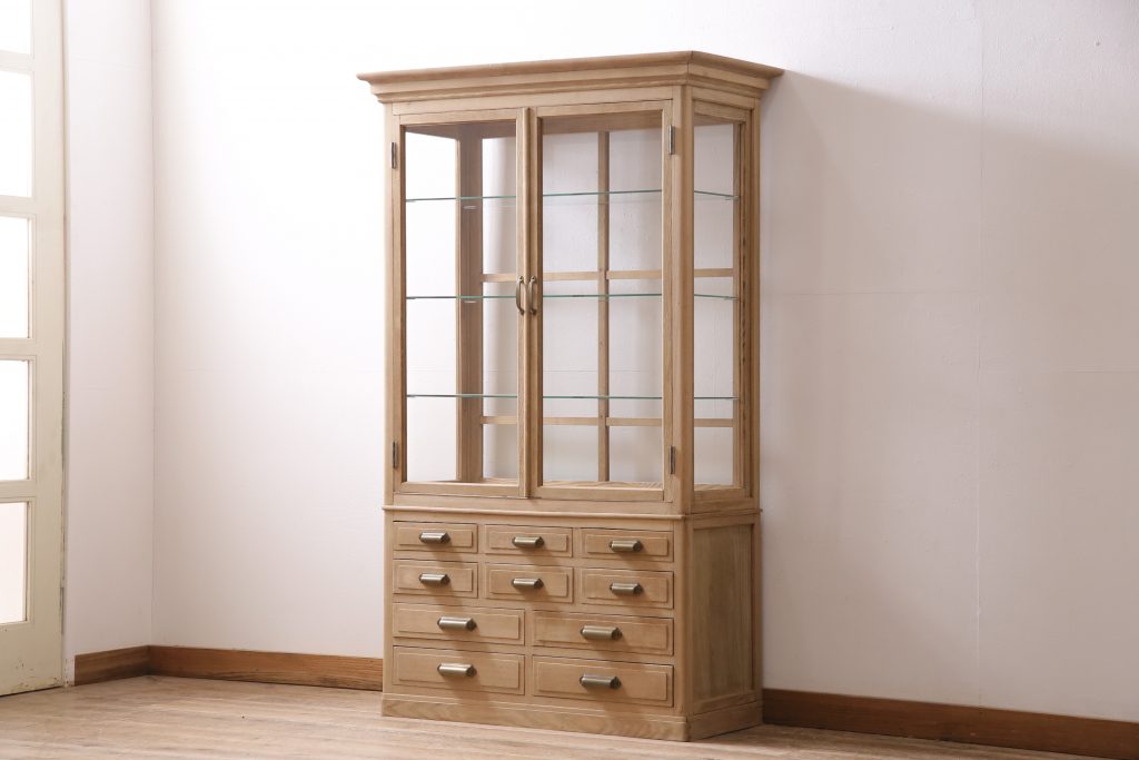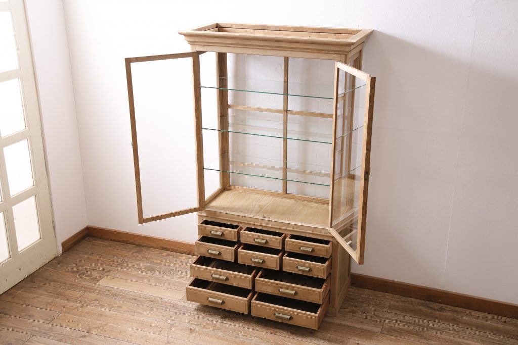 ガラス張りの背面、10杯も付いた大容量の引き出しもこのケビントの特徴でした。