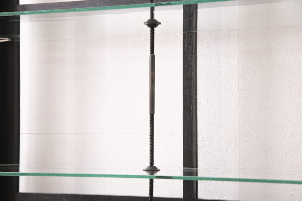 ・沢山商品を陳列しても安心なアジャスターボルトでガラス棚板を支えました。