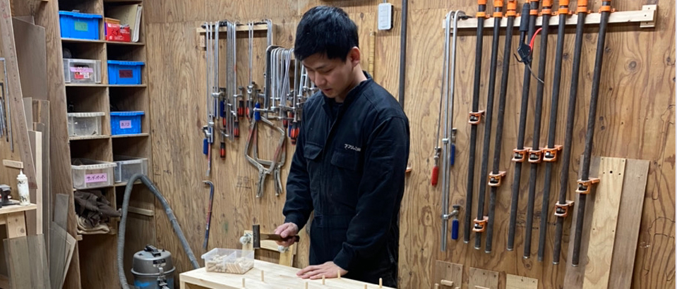 第4位、大きな民芸家具の奥行幅の詰め作業。