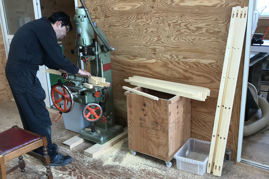 釘は使わず全て木の凸凹によって組み上げるので、製材後はホゾ穴を掘ったり地道な作業が続きます…!