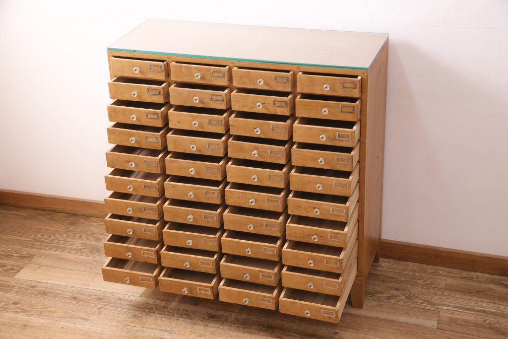 ラフジュ工房でもこのように引き出しのギッシリついたアンティーク家具は人気が高いですね。