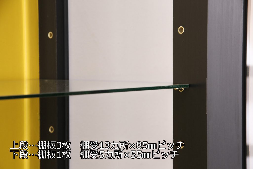 上段のガラス棚板、下段の戸棚はこのようにダボ穴式で高さを自由に調節可能です!