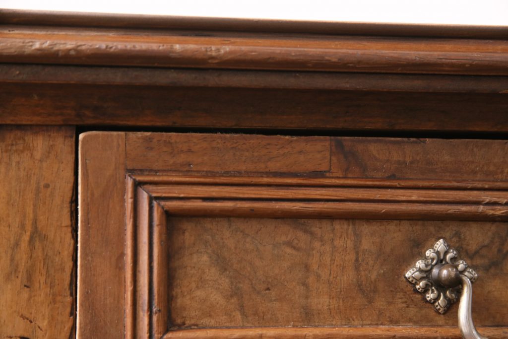 その上の引き出しの縁が、ラフジュ工房で天板の「突板」を利用して修復した場所になります。