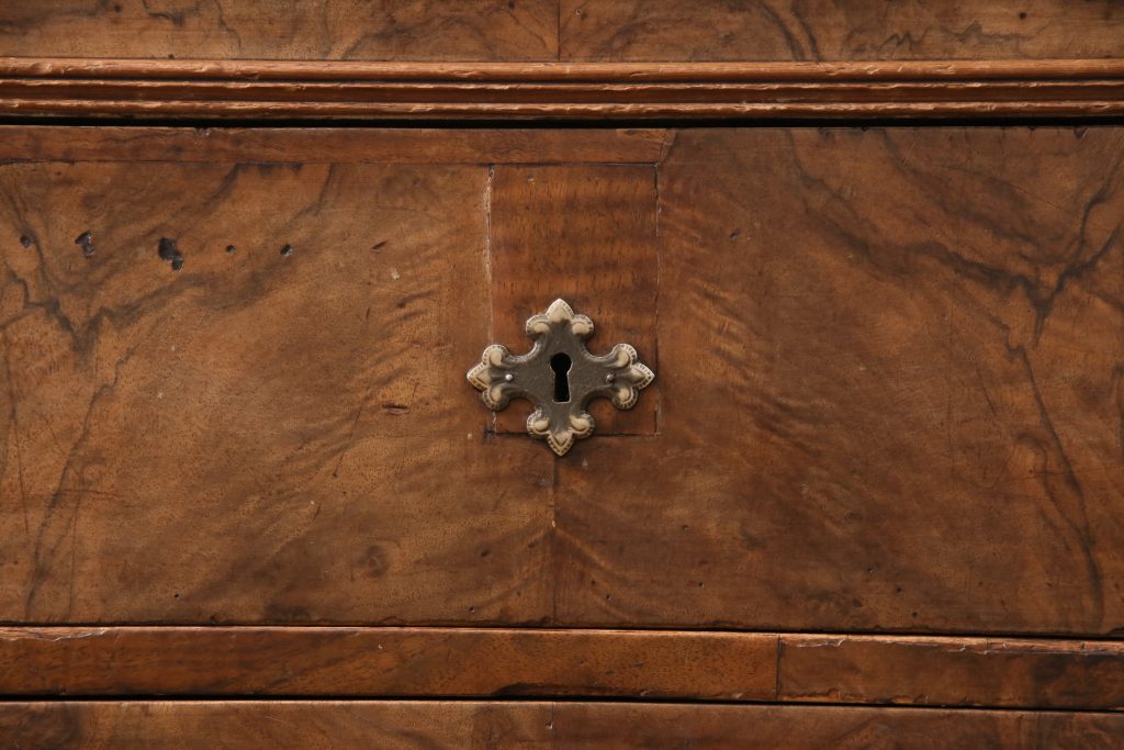 海外のアンティーク家具は、「突板」と言う天然の木材を薄くスライスした木の皮を表面に貼る事でその美しい見た目を作り上げています。