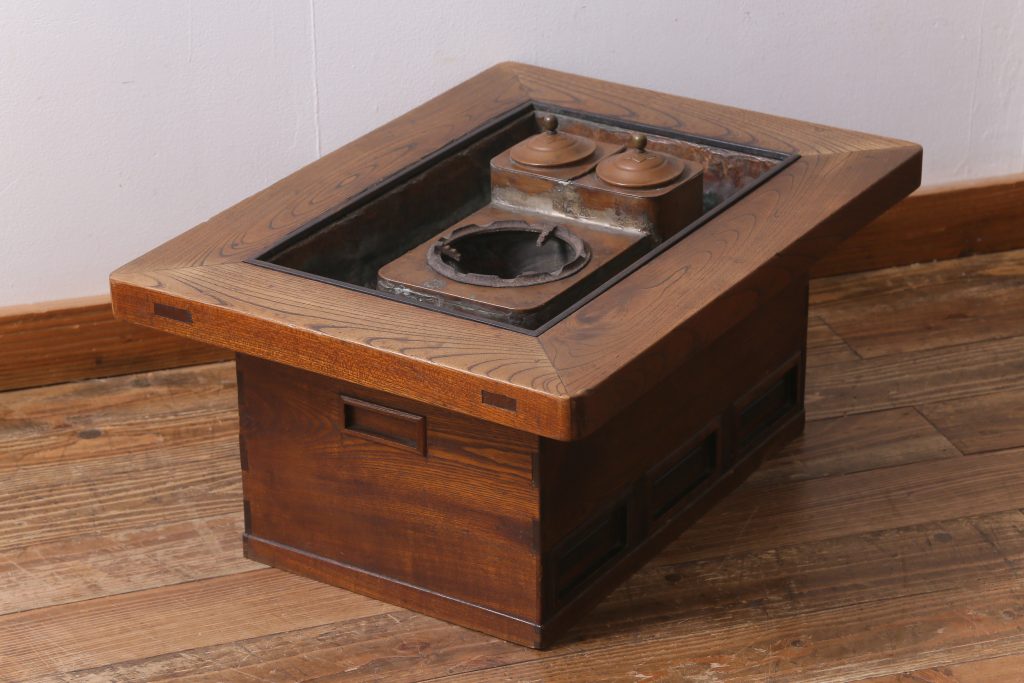 高級素材である欅材の杢目が魅力的な長火鉢です。