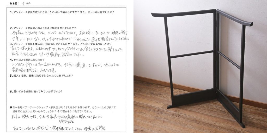 【お客様のレビュー】東京都 T.M様 衣桁ご購入「古くていいものを次世代に受け継いでいくことに非常に共感」