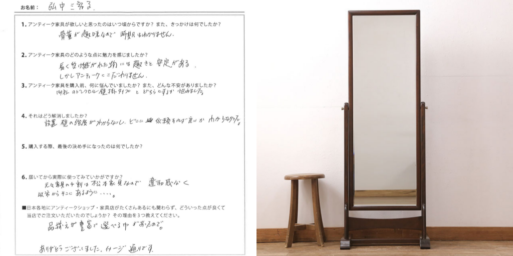 お選びいただきましたのは、松本民芸家具のD型姿見。