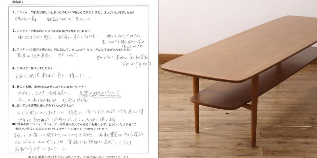 ソファとの高さがばっちりでした。大切に使います….