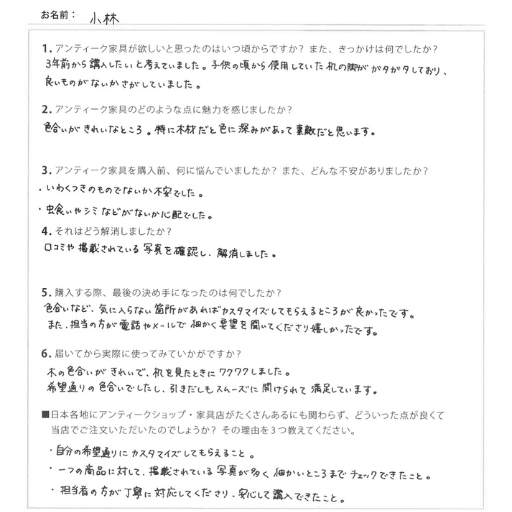 購入の決め手となったのは「気に入らない箇所があればカスタマイズできる」、「細かく要望を聞いてくれる」との事。ラフジュ工房が目指しているのはまさにそこ!