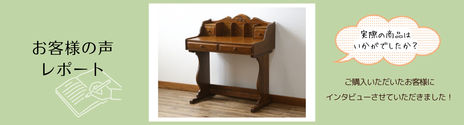 前回購入いただいた家具が「価格以上に良かった」とご満足いただけたようで、当店も大変嬉しく思います。