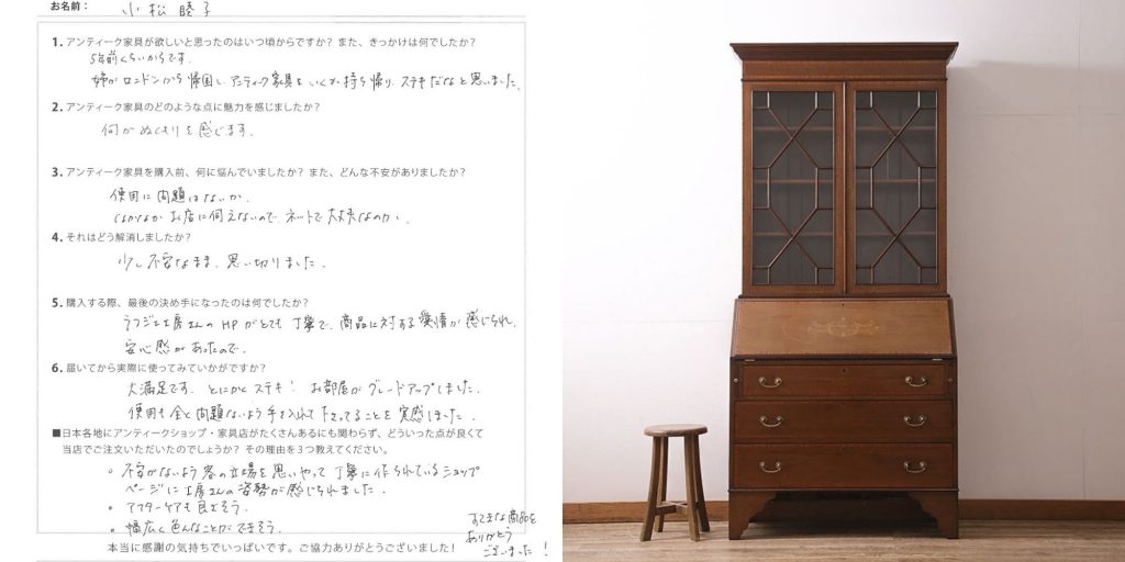 インターネット通販でアンティーク家具を購入するにあたり「不安なまま思い切りました」とのリアルなお言葉…とっても分かります!!