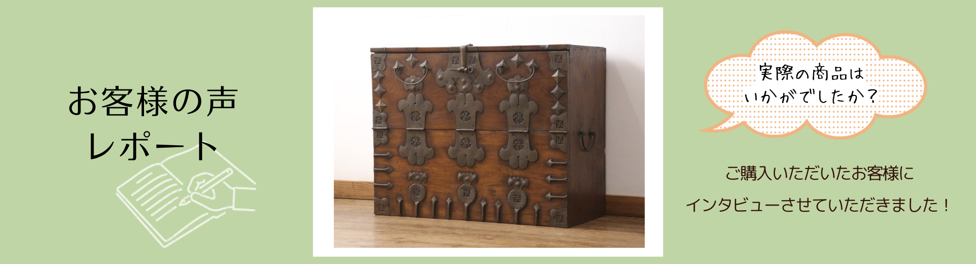 お買い求めいただいたのは、立派な金具が目を引くバンダチ。李王家が朝鮮半島を支配する朝鮮王朝時代に使われていたお品です。置くだけで存在感抜群ですね!!
