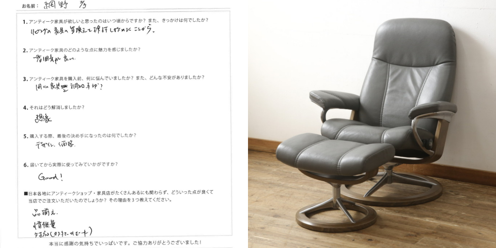 【お客様のレビュー】東京都 網野様 EKORNESストレスチェア+オットマンご購入「Good!」