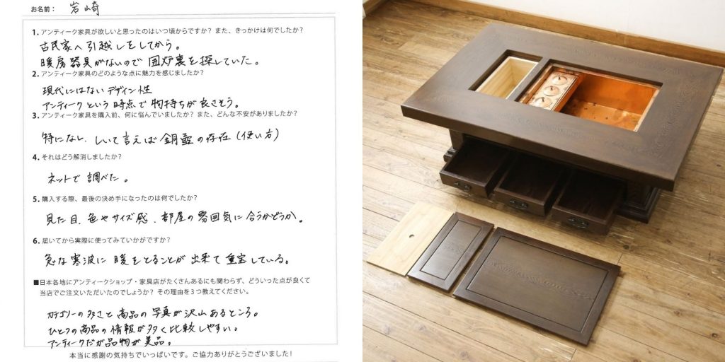 お買い求めいただいたのは、鉄刀木の無垢材を贅沢に使用した関西火鉢。
