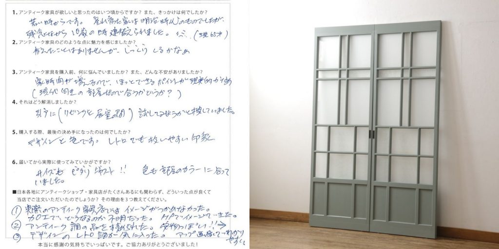 【お客様のレビュー】京都府 匿名希望様 ガラス戸2枚ご購入「サイズもピタリ!!色も部屋のカラーに合っていました。」