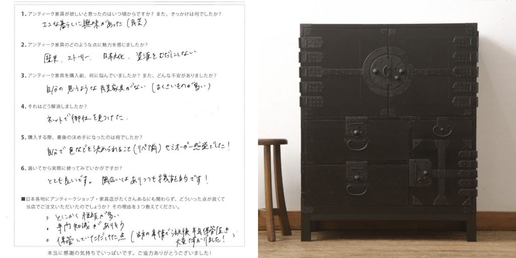 【お客様のレビュー】東京都 匿名希望様 小箪笥リメイク「歴史、ストーリー、日本文化、資源をむだにしない」