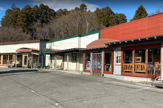 ショップは平屋で横に長く作られていて、3つの建物が中をつなげた状態で連なっています。