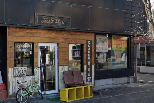 いまはアンティークショップとして生まれ変わって、オーニングの部分に乗せられたトタンの庇が色とりどりでかわいいです。