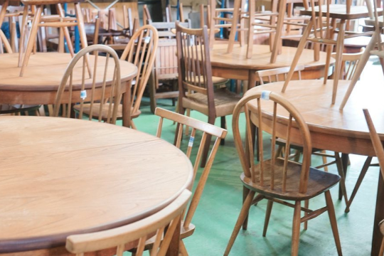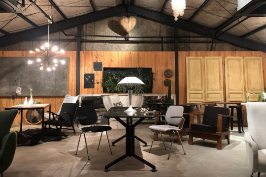イギリスヴィンテージや北欧家具を中心に、世界中から買い付けてきたアンティーク家具が広い倉庫内にたくさん並べられています。