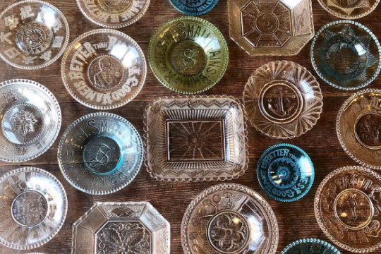 「こきーゆ」では珍しい濃い色味のプレス皿やレアな型のものも入荷することがあるらしく、コレクター必見です。