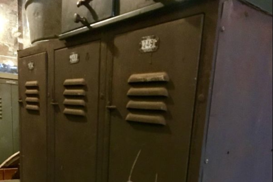 1940年代のものと思われる大型のメタルロッカーは、棚としてはもちろん、アメリカンガレージ風のインテリアにもぴったりです。