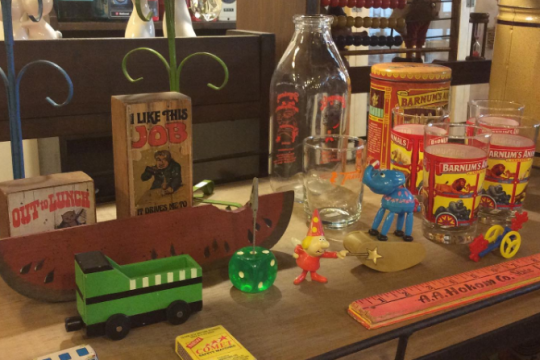ノスタルジックな雰囲気を持つブリキ缶やレトロ玩具は、遊び心とポップな風合いに懐かしさを覚えます。