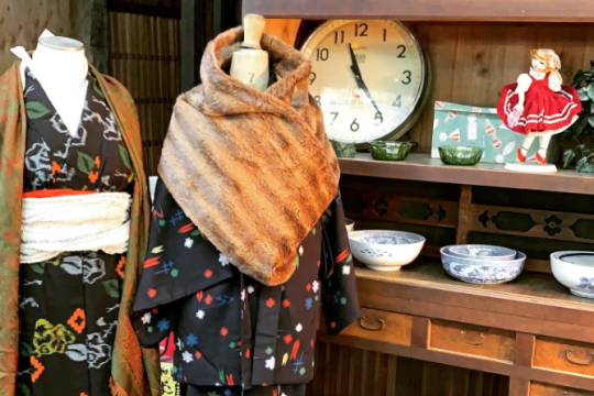 国内外問わず集められた古道具と、着物リメイクのオリジナルアイテムを扱っているアンティークショップです。