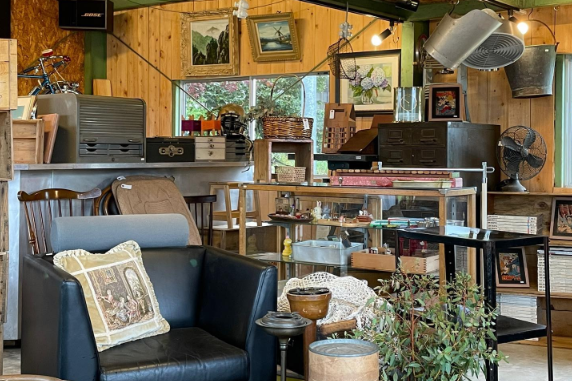 自然一杯の景色の中、どこをみてもアンティークと古道具だらけでとにかく見ごたえのあるショップです。