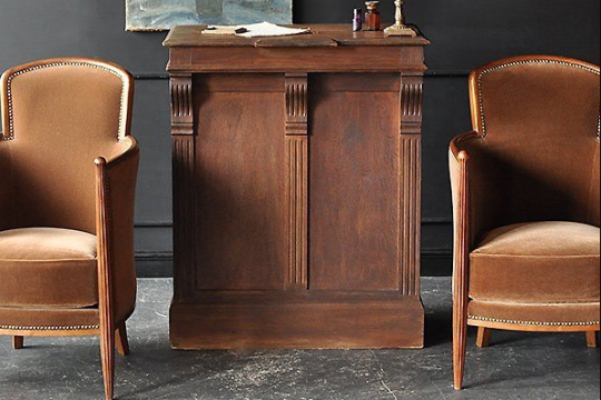マホガニー、ウォルナット、チークなどの材木を中心に、ヨーロッパから買い付けたアンティーク家具を修復して販売しています。
