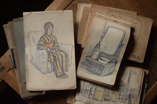 きっと本人は思い出として残して、家族は描いた人を大切に思って保存して、というリレーでここまでやってきた品々なのでしょう。