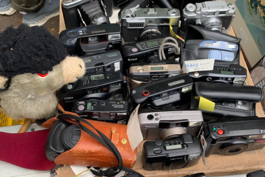 ずらっと並ぶ80年代のフィルムカメラ。