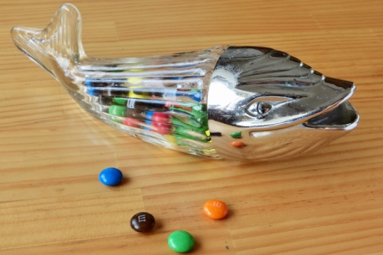 クジラ型のガラス容器は、60年代頃にイギリスでナッツを入れて使われていたもの。