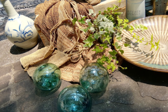 日光に当たるとキラキラ輝くグリーンの浮き球は、仕事道具だったのが不思議なくらいキレイです!