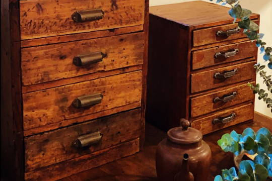 ノスタルジックあふれるチェスト。隙間なく、ぴたりと収まる引き出しは当時の職人の腕の良さを物語ります。