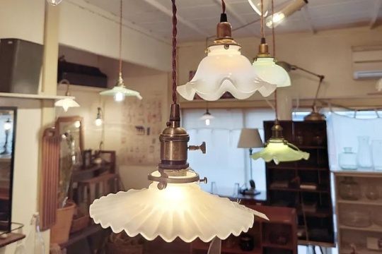 フリルにかたどられたガラスシェードは、お部屋を一気にアンティークな雰囲気にしそう。