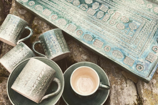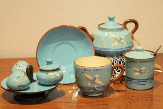 エメラルドグリーンが目を引くプレートとカップは、1960年代にイギリスのワイト島で作られたものだそうです。